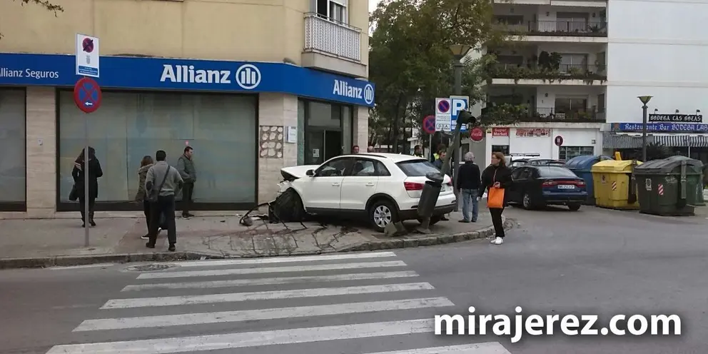 Un coche se empotra a gran velocidad contra la fachada de Allianz Seguros