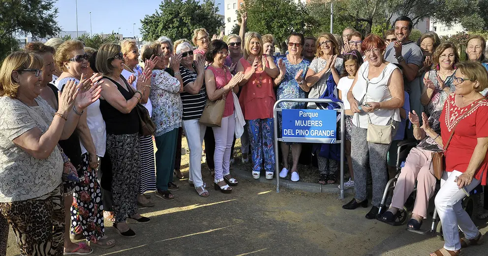 La Asociación de Mujeres del Pino Grande lleva más de veinte años trabajando por las mujeres y haciendo una labor social dentro y fuera del Pago de San José, luchando por la integración y participación de las mujeres en todo lo que concierne a la mejora de la barriada así como por una mejor calidad de vida de sus vecinos y vecinas. En la tarde de ayer, el colectivo mostró su satisfacción por ver su nombre rotulando este parque, espacio de reunión para niños y mayores, en el que vecinos y vecinas disfrutan de la convivencia y el encuentro.