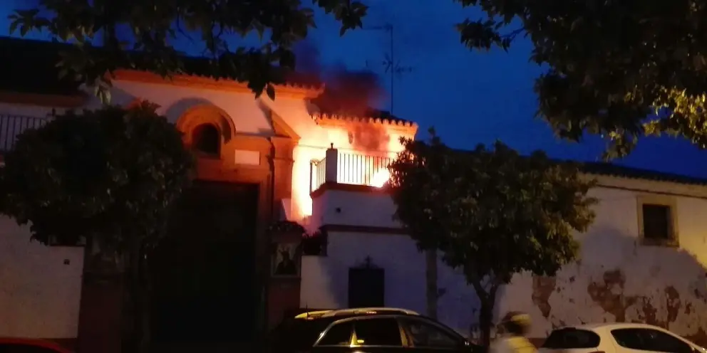 Grandes llamas han alertado a vecinos y transeúntes de un fuego en la azotea existente en la parte superior de la Capilla de los Desamparados, donde reciben culto los titulares de la Hermandad de la Coronación.