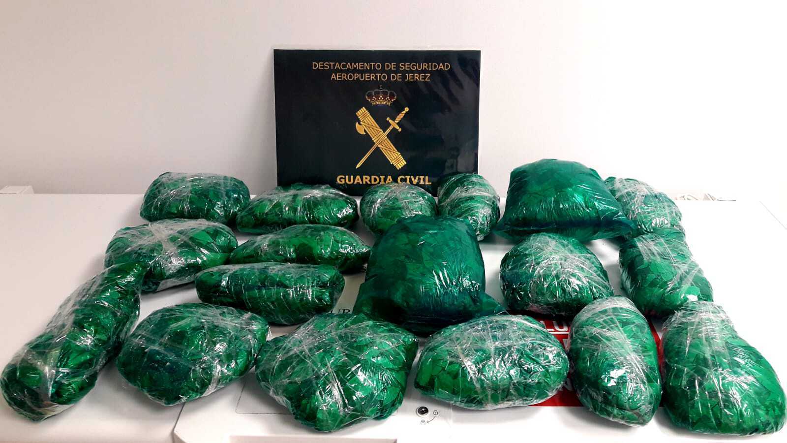 La Guardia Civil de Cádiz ha detenido en el aeropuerto de Jerez de la Frontera a una mujer que trasportaba en su equipaje más de 4,5 kilos de hojas de coca.