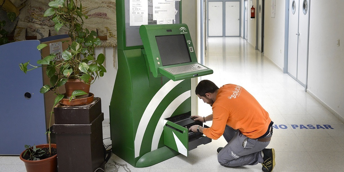 Las personas usuarias del Servicio Andaluz de Empleo (SAE) contarán en breve con un nuevo punto de empleo del SAE en la zona Oeste para realizar sus gestiones, ya que esta mañana se ha comenzado a instalar uno de estos conocidos 'cajeros SAE' en el Centro Cívico 1º de Mayo-Distrito Serrana, en la avenida del Mosto.