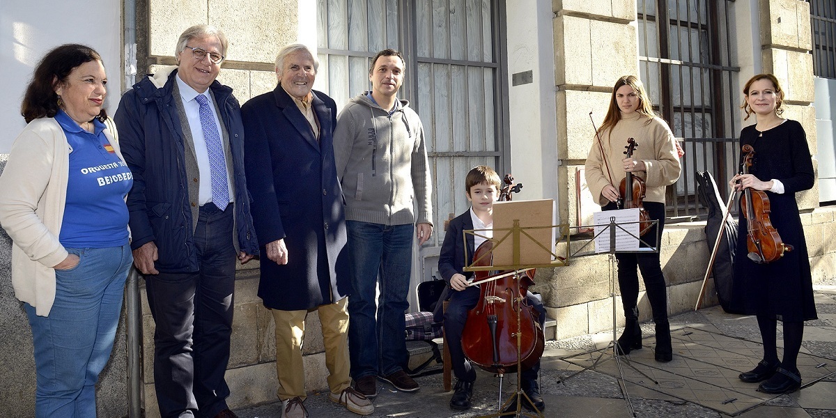 El teniente de alcaldesa de Urbanismo, Dinamización Cultural, Patrimonio y Seguridad, Francisco Camas, junto a familiares de Germán Álvarez Beigbeder, y representantes del Conservatorio Profesional de Música y la Orquesta ‘Álvarez Beigbeder’, ha asistido al acto de homenaje que el Ayuntamiento ha ofrecido al compositor en el 50 aniversario de su muerte.