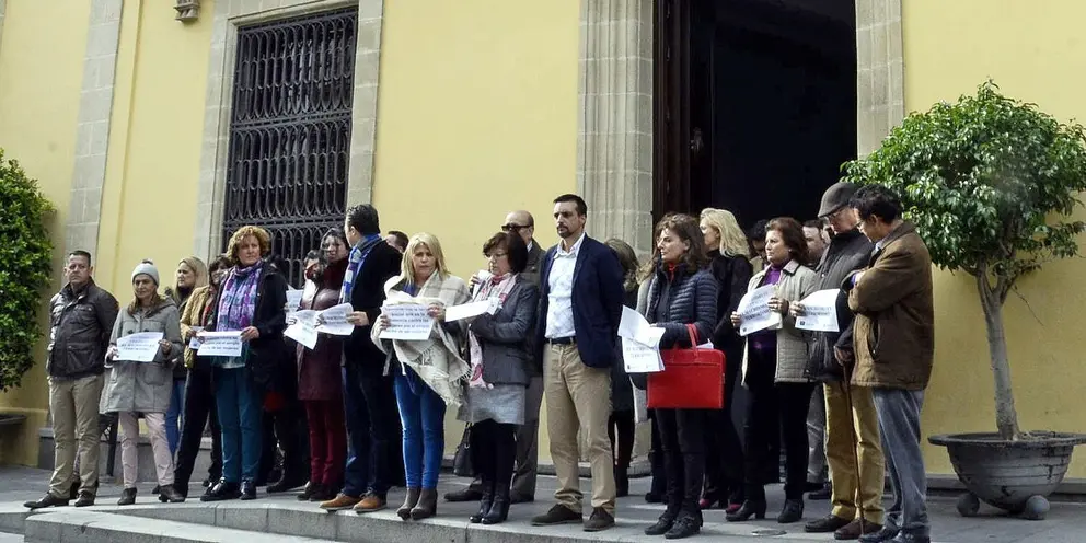 La alcaldesa Mamen Sánchez, acompañada por la teniente de alcaldesa de Igualdad, Acción Social y Medio Rural, Carmen Collado; el teniente de alcaldesa de Economía, Hacienda y Planes Especiales, Santiago Galván y el teniente de alcaldesa de Sostenibilidad, Participación y Movilidad, José Antonio Díaz, ha participado en la concentración de repulsa y de homenaje a las víctimas de violencia de género que se ha celebrado esta mañana en la puerta del Ayuntamiento, durante el cual se han guardado cinco minutos de silencio. De esta manera, Jerez se ha sumado a la propuesta acordada en la ultima reunión de coordinación de los Centros Asesores de la Provincia de Cádiz.