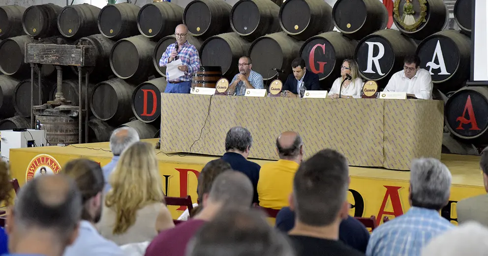 En la mañana de hoy se ha celebrado en las Bodegas Williams & Humbert la jornada “Riesgos psicosociales del trabajo en cadena en el sector vitivinícola” organizada por los sindicatos UGT y CC.OO y la patronal bodeguera Fedejerez en el seno de la Comisión Sectorial de Salud Laboral prevista en el XXV Convenio Colectivo de la Vid de la Provincia de Cádiz.