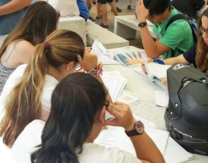 La nueva selectividad apenas ha supuesto grandes novedades, aunque sí ha sido motivo de mayores nervios e incertidumbre entre alumnos, como se podía palpar en el campus universitario durante los tres días que han durado los exámenes. La polémica y la desolación causado el primer día para un nutrido grupo de estudiantes tras el examen de Historia, asignatura obligatoria tras la reforma de la LOMCE, no ha impedido seguir viendo a los estudiantes inmersos en sus apuntes entre examen y examen en un campus abarrotado de jóvenes y folios por doquier.