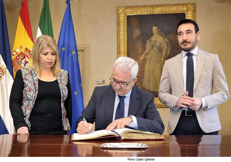 Jiménez Barrios ha querido mostrar el "cariño y respeto" que tiene la Junta por Jerez. También ha firmado en el libro de Honor del Ayuntamiento.