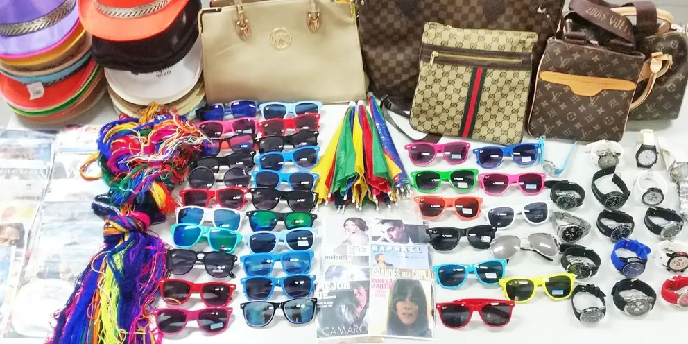 Entre los objetos decomisados se encontraban gorros, pulseras, llaveros y objetos de decoración