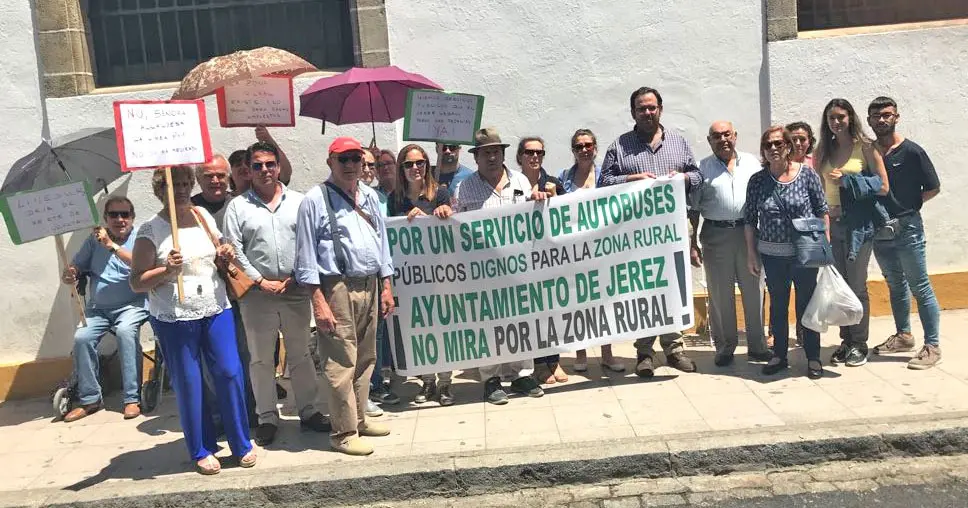 El pasado jueves 14 de Junio los miembros de la Plataforma constituida por la defensa de los usuarios de los autobuses de línea interurbana de la Zona Rural, vista la situación lamentable que persiste desde hace varios años en este servicio esencial y el estado pésimo de los vehículos que forman la flota del servicio, se han concentrado protestando en defensa de todos los usuarios perjudicados por esta situación en Jerez, en la parada de estos autobuses, por un servicio digno.