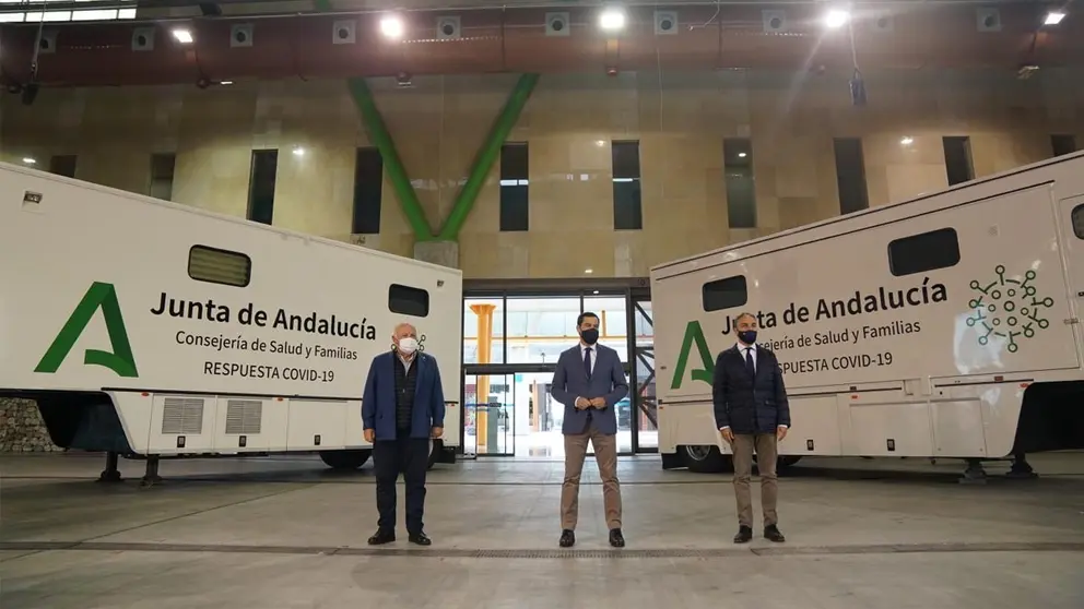 La Junta de Andalucía estrena en el pabellón Veguita de Jerez los camiones móviles que realizarán cribados masivos de Covid-19