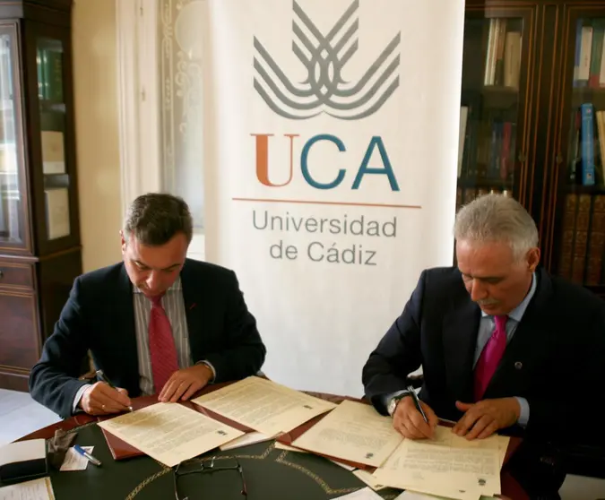 La Universidad de Cádiz y la Universidad Hassan I de Settat cooperarán en materia docente e investigadora, así como en lo relacionado a la movilidad de profesorado, investigadores y estudiantes. Sus rectores, Eduardo González Mazo y Ahmed Nejmeddine, respectivamente, han firmado esta mañana un convenio marco y otro específico de colaboración en el Rectorado de la UCA.