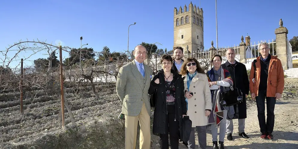 Tras la recepción en el Ayuntamiento los miembros de la delegación de Reims han visitado la Finca El Majuelo - Castillo de Macharnudo, en la carretera de Trebujena, para conocer de cerca el cultivo de la vid en el Marco.