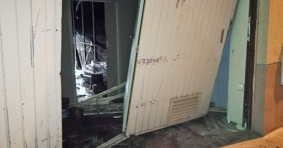 Minutos después, a las 4:55 horas encontraron una nave con la puerta de acceso "reventada", llamando de inmediato de nuevo a la Policía Nacional. En ese instante observaron como un individuo intentaba salir de la nave, impidiéndoselo desde el interior. A requerimiento del CNP revisaron la nave, quedando esta persona retenida.