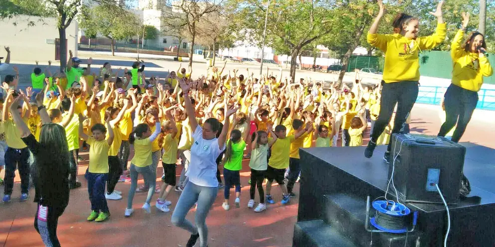 Los más de 700 alumnos del CEIP Manuel de Falla, han podido disfrutar durante los días 6 y 7 de abril de unas jornadas de zumbatón adaptadas para cada edad, estando divididas en dos sesiones cada día, para infantil, 1º y 2º, 3º y 4º, 5º y 6º, de la mano del Centro de Baile y Deportivo Hermanas Sánchez.