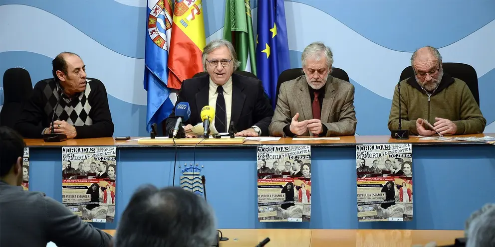El teniente de alcaldesa de Urbanismo, Dinamización Cultural, Patrimonio y Seguridad, Francisco Camas, ha presentado hoy las primeras Jornadas por la Memoria Histórica y Democrática de Jerez que, con el título ’80 años después de la Guerra Civil: en memoria de las víctimas de la represión’ tendrán lugar en Los Claustros de Santo Domingo en los días 1, 2, 3 y 7, 8 y 9 de febrero. Francisco Camas ha estado acompañado por José Ruiz Mata, de la Plataforma Memoria Democrática, Manuel Ramírez, de la Asociación Cultural Memoria Histórica y Manuel Guerrero, del Ateneo de Jerez.