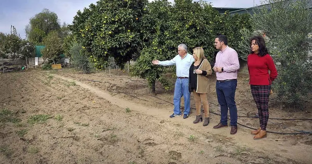 La alcaldesa de Jerez, Mamen Sánchez, junto al delegado de Deportes y Medio Rural, Jesús Alba, y la delegada de la barriada rural de Majarromaque, Josefa Sánchez, ha vivido in situ la problemática que se cierne sobre 200 fincas de colonos (con una superficie media de 500 ó 600 m²) que se pueden quedar sin agua de riego para el cultivo de productos destinados al autoconsumo. Invitados por Carmelo Castells, uno de los vecinos de Majarromaque afectados, los representantes municipales conocieron las características de estos huertos familiares.
