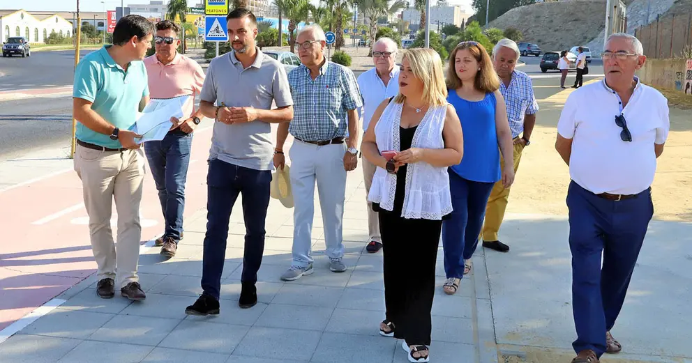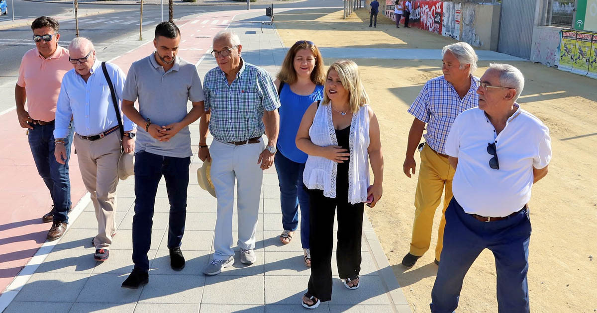 La alcaldesa, Mamen Sánchez, junto al teniente de alcaldesa de Urbanismo, Medio Ambiente e Infraestructuras, José Antonio Díaz, y a los representantes de la Asociación de Vecinos ‘Bellos Horizontes’, cuyo presidente es Francisco Jiménez, igualmente directivo de la Federación Vecinal ‘La Plazoleta 2.0’, ha supervisado la finalización de las obras del denominado eje ‘Picadueñas-Las Torres’ ubicado en el margen izquierdo de la avenida Reina Sofía en sentido hacia Cádiz.