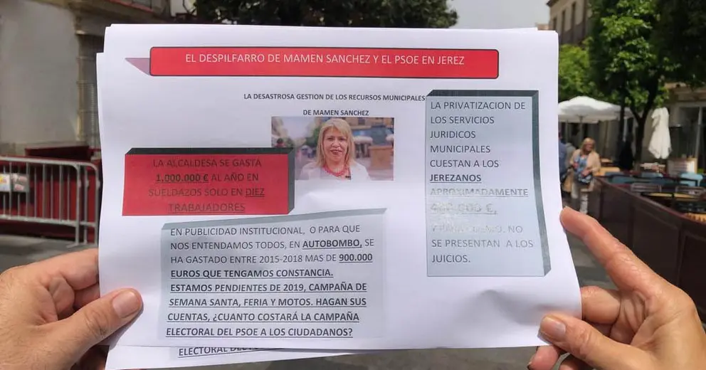 Aparecen multitud de panfletos denunciando la "desastrosa" gestión de gasto público de la alcaldesa de Jerez