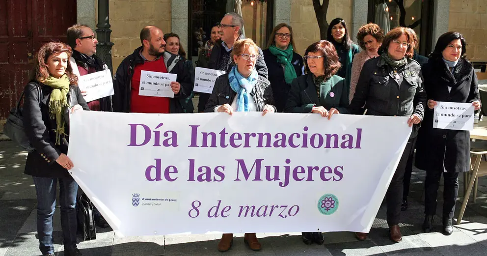 En la mañana del miércoles, la calle Consistorio ha sido escenario de una concentración de apoyo a la campaña #CadizIgualitaria8M , bajo el lema 'Sin nosotras, el mundo se para' . El Ayuntamiento de Jerez, junto al Instituto de la Mujer y Diputación de Cádiz, han organizado un encuentro que se ha repetido en las diferentes localidades de la provincia, y en el que es posible participar durante todo el día publicando en las redes fotografías con el lema y la etiqueta propuestos.