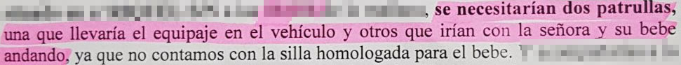 En la misiva solicitan dos coches patrulla, uno para llevar el equipaje y otro para acompañar a la mujer y su hijo andando, ya que según reza el documento dice: "ya que no contamos con la silla homologada para la edad del pequeño". Hay que reseñar que MIRA Jerez sí ha podido saber que sí disponen de otras sillas homologadas para otro tramo de edad. Esta redacción no aporta más información sobre el caso puesto no quiere dar datos concretos de la identidad, ni edades, ni calles de partida ni destino, para salvaguardar la seguridad de la persona protagonista de los hechos, pero confirma que la noticia es correcta, y que es un intento más de intentar desprestigiar al medio de comunicación líder en la ciudad, el único de los diarios digitales auditados por OJD que no recibe publicidad institucional a dedo.