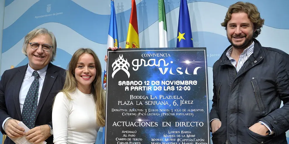 El teniente de alcaldesa de Urbanismo, Dinamización Cultural, Patrimonio y Seguridad, acompañado de María Espejo, que encarna al Gran Visir estas Navidades, y el presentante del grupo ‘Cambio de Tercio’, Damián López Cepero, ha presentado la Convivencia Gran Visir que se celebrará el sábado, día 12 de noviembre a partir de las 12 horas en la Bodega La Plazuela, en la plaza La Serrana, 6.