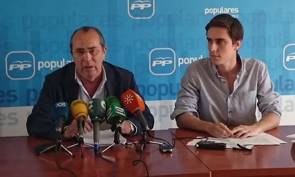 Aurelio Romero, diputado nacional del Partido Popular, junto a Jaime Espinar, presidente de Nuevas Generaciones de Jerez, explican en rueda de prensa los incentivos del sistema nacional de garantía juvenil que se aprobaron hace diez días el consejo de ministros, y que el jueves pasado fue ratificado en el Congreso de los Diputados.