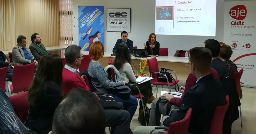 Conocer a otras empresas para fomentar las sinergiaen la provincia gaditana, presentar sus propios proyectos contando con solo dos minutos así como multiplicar las posibilidades de negocio. Con estos objetivos han acudido hoy más de 40 empresas gaditanas al ‘Speed Networking’ organizado por AJE Cádiz y financiado por el Área de Empleo de la Diputación de Cádiz, dentro del Proyecto de Sensibilización para el Fomento Empresarial enmarcado en el Plan Estratégico de Desarrollo Socioeconómico y Empresarial de la provincia de Cádiz 2018.