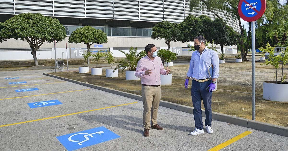 Igualmente, cabe mencionar la actuación realizada en los aparcamientos del Complejo Deportivo Chapín (con entrada desde la avenida Rafael Verdú) en la que se han individualizado las plazas y ubicado las reservas para personas con movilidad reducida en la zona más próxima de acerado a la puerta de acceso y a la rampa creada a tal efecto. Este pintado ha sido realizado por Movilidad a través de SICE.