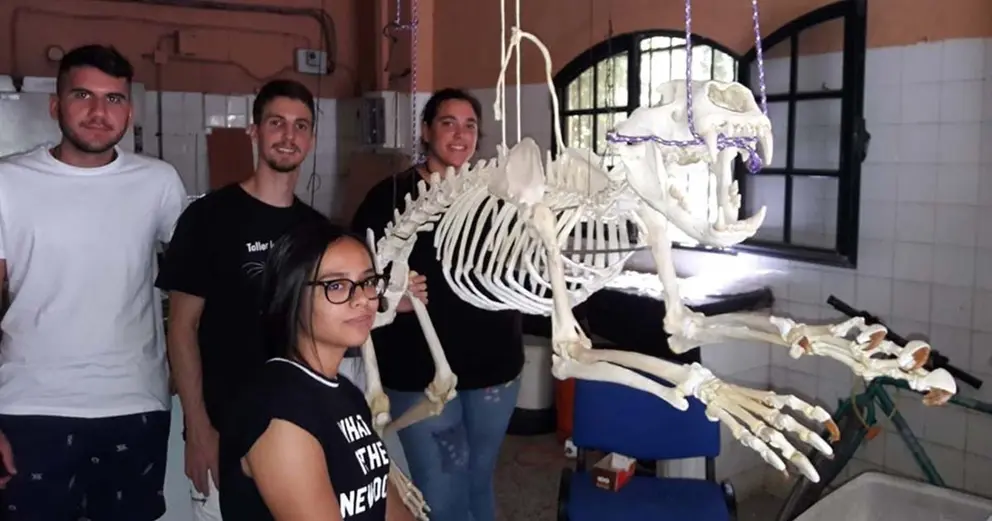 Un verano más, a través de un convenio de colaboración entre el Zoobotánico y la Asociación Sirena, se ha venido desarrollando el citado taller, que en esta edición ha dado como resultado, entre otras cosas, este fabuloso esqueleto de leona.