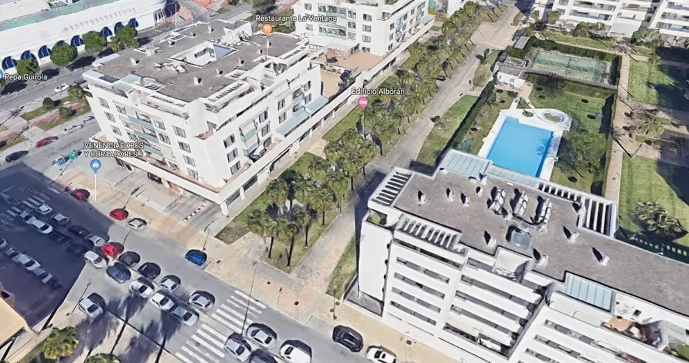 Testigos presenciales del suceso alertaron al 112 de que un hombre se había precipitado al vacío desde una cuarta planta en el Edificio Alborán.