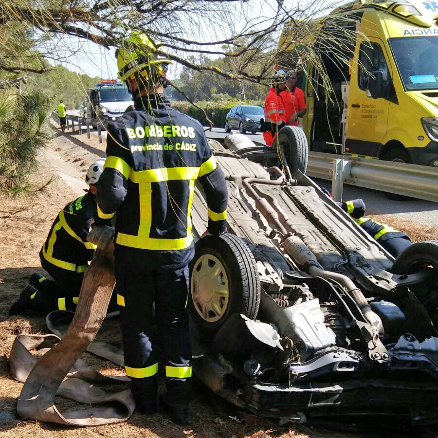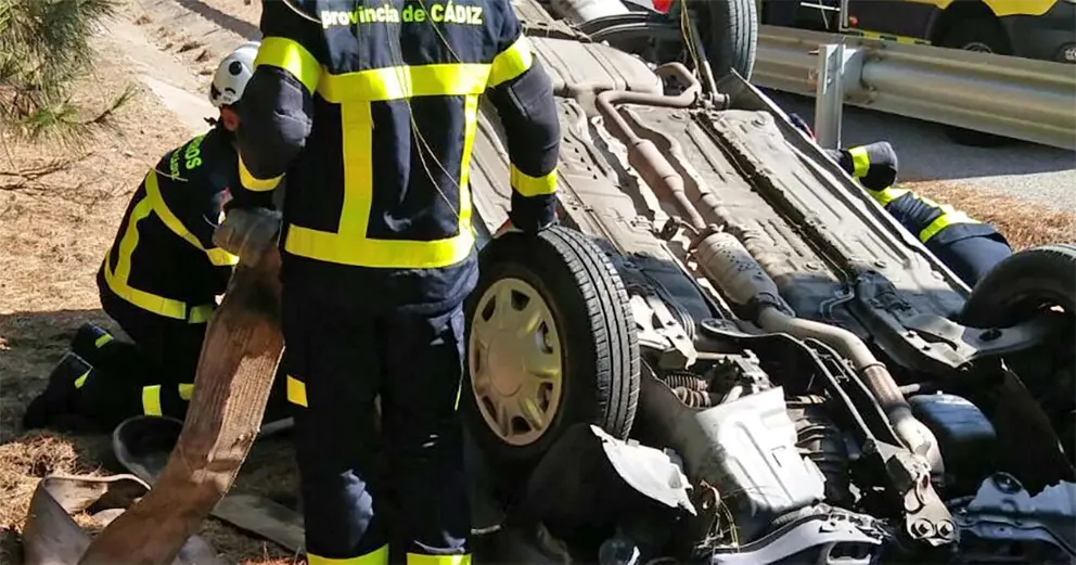 Los Bomberos de Jerez se han trasladado al lugar, y han comprobado de que se trataba de un turismo que se había salido de la vía, volcando y quedando fuera de la autopista bocabajo.