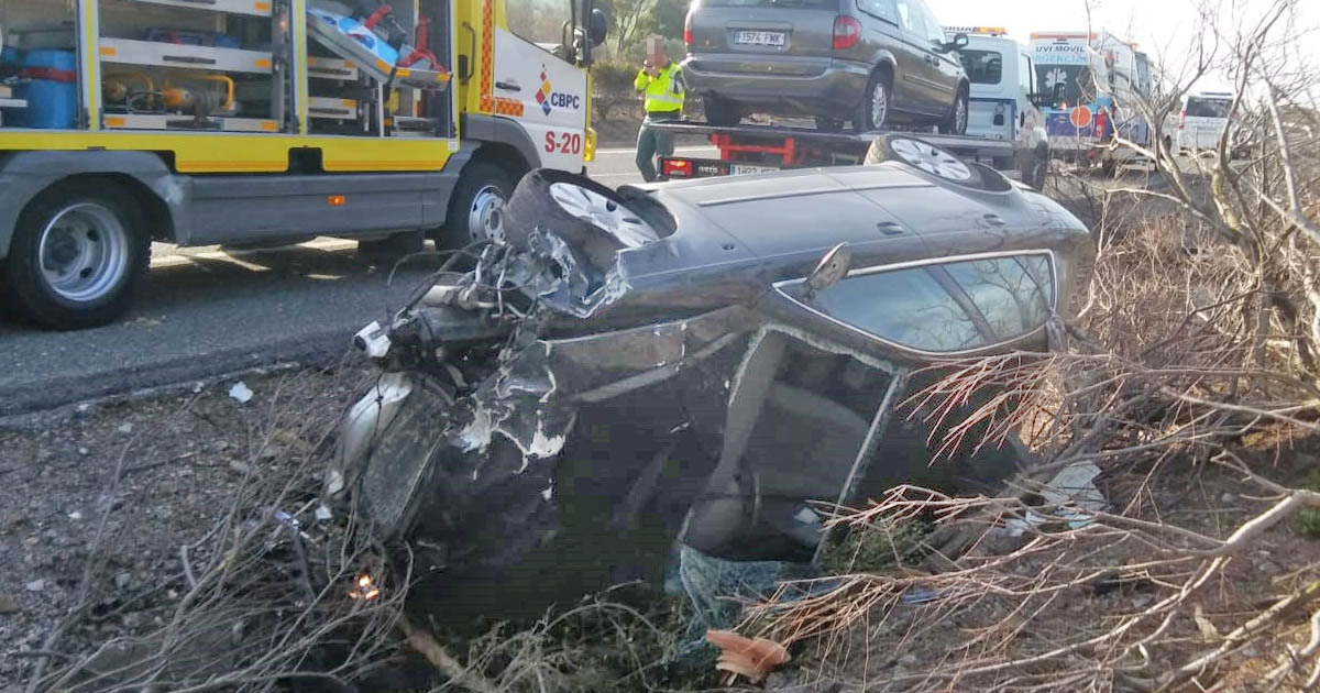 El vehículo se había salido de la calzada y se había desplazado unos 30 metros por el arcén de la carretera, quedando boca abajo.