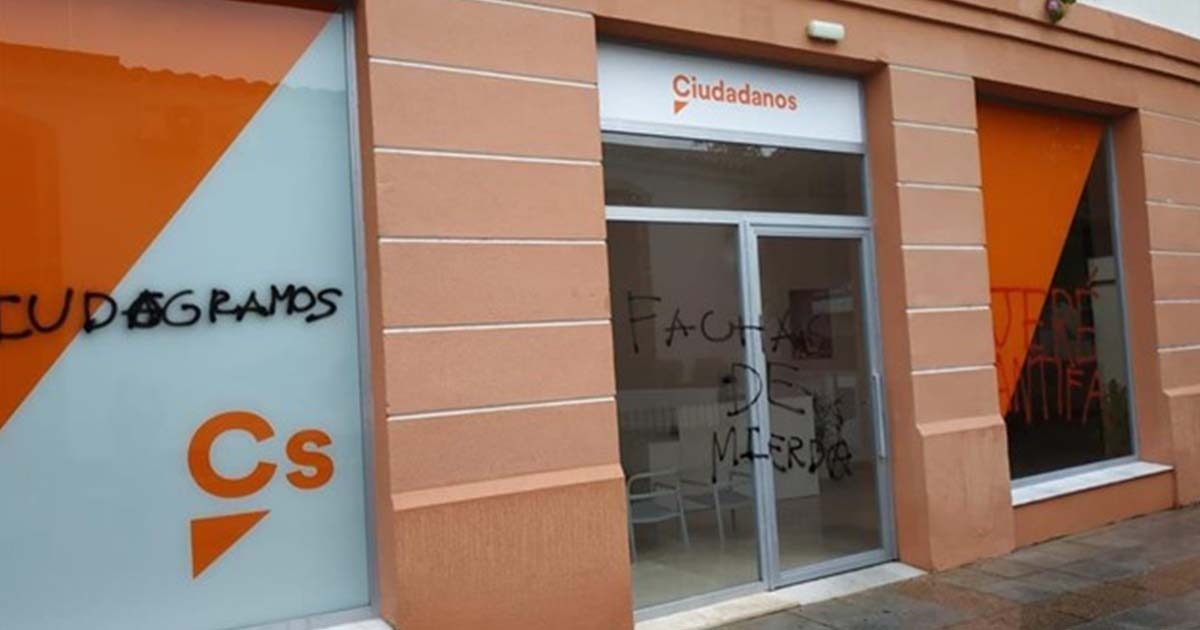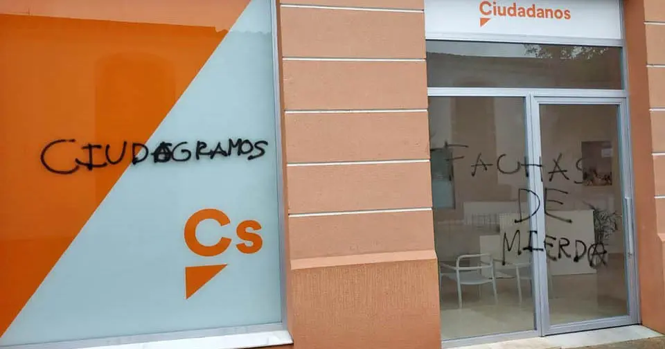 Nuevas pintadas vandálicas en la fachada de la sede de la formación naranja en Jerez: 'Fachas fuera' o 'Ciudagramos'