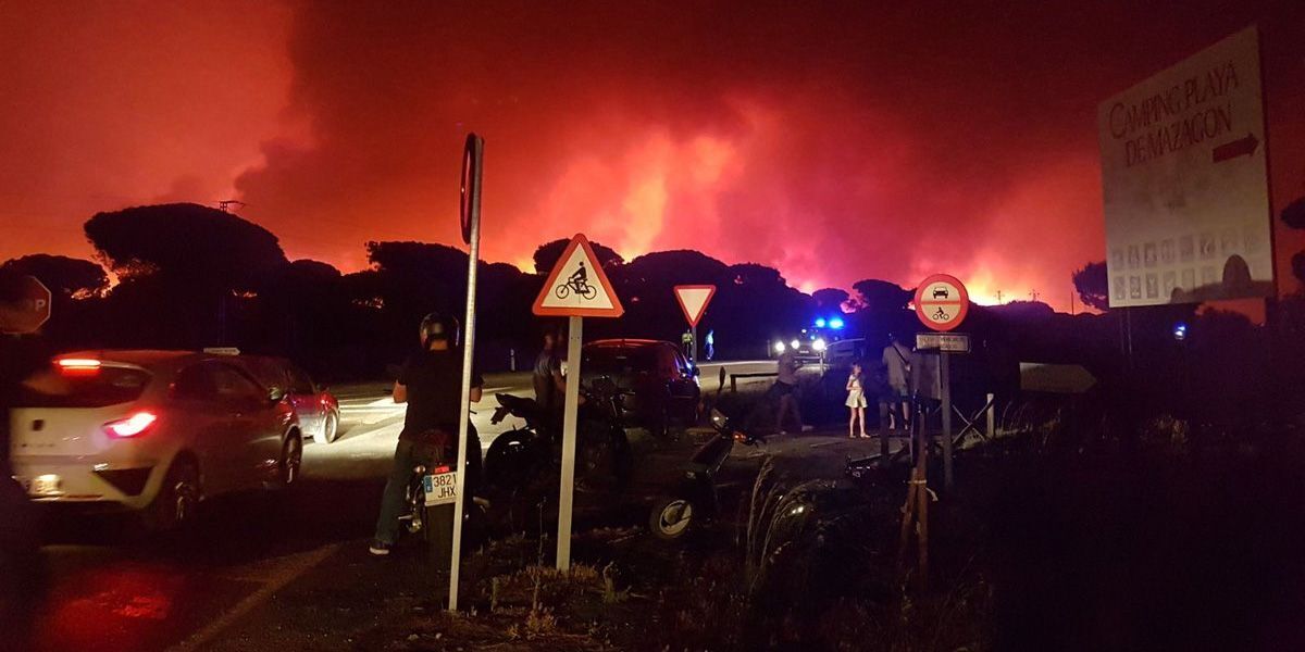 Olor a humo y cenizas del incendio de Huelva llegan a la Bahía y a Conil