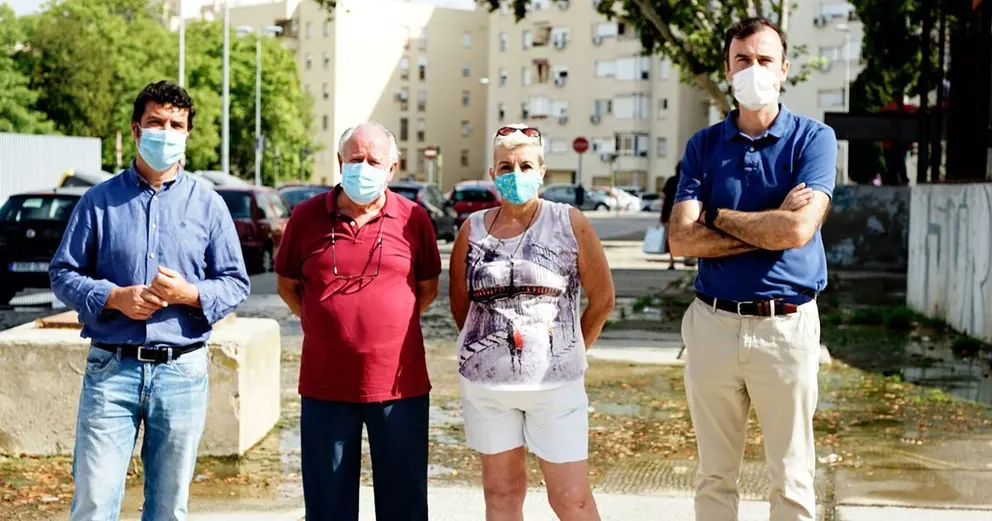 Los concejales de Ciudadanos Jerez, Manuel Méndez y Jesús García, portavoz y viceportavoz del grupo municipal, respectivamente, acompañados por Sebastián Peña, presidente de la federación vecinal ‘Solidaridad’, han conocido de la mano de la junta directiva de la Asociación de Vecinos ‘Verde y Blanca’ - zonas residenciales de ‘El Titanic’ y ‘La Constitución’- las demandas que llevan reclamando de forma recurrente al Ayuntamiento de Jerez para que sean solucionadas.