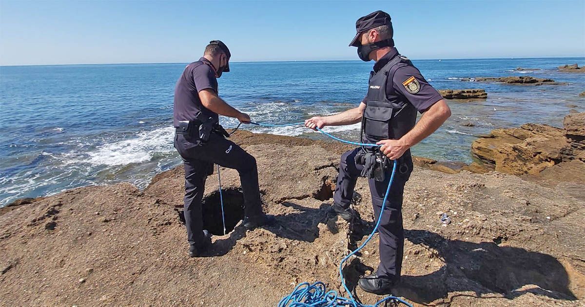 Rescate en Cádiz de una persona caída a una fosa inundable por agentes de la Policía Nacional de la Comisaría de Jerez