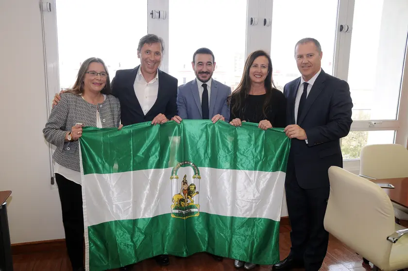 El delegado del Gobierno la Junta de Andalucía en Cádiz, Fernando López Gil, acompañado de la delegada territorial de Cultura, Turismo y Deporte, Remedios Palma, ha hecho entrega hoy al periodista Paco González de la distinción al Reconocimiento Deportivo con la que fue galardonado con motivo de la celebración del Día de Andalucía en Cádiz, y que no pudo recibir en ese momento por motivos profesionales. Al acto ha asistido también el responsable de Emisoras de Cadena COPE, Javier Castro, y la directora de COPE Cádiz, Pilar Oliva.