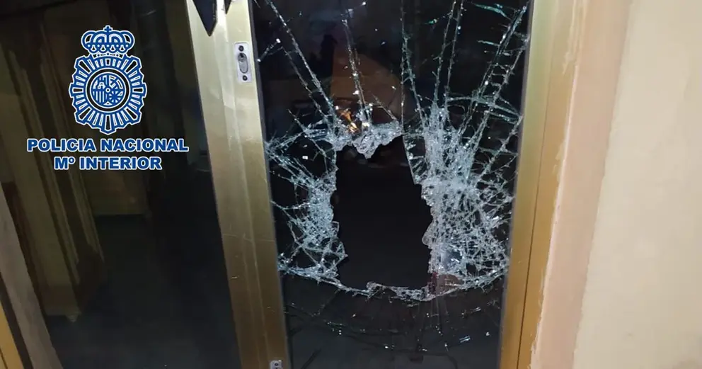 Los agentes comprobaron como el cristal de seguridad de la puerta de acceso principal al lugar presentaba un boquete de importante diámetro pero aún no lo suficiente para que por el mismo pudiera introducirse una persona, por lo que de inmediato iniciaron una búsqueda por las inmediaciones del autor de los hechos.