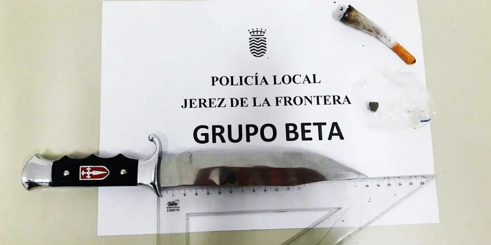 Los agentes tras cachearlo para comprobar si llevaba más estupefacientes, dieron con un arma blanca de 18 centímetros de hoja