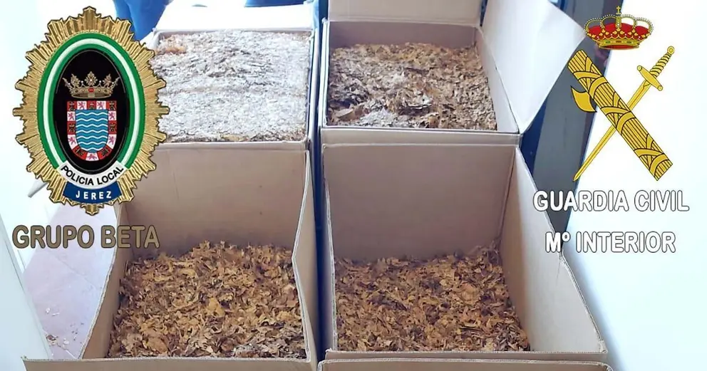 La Policía local y la Guardia Civil de Jerez han realizado una operación conjunta que se ha saldado con la intervención de cerca de 500 kilos de tabaco de contrabando en una nave situada en la zona suroeste de la ciudad, y la detención de tres personas por presuntos delitos de contrabando y contra la salud pública.