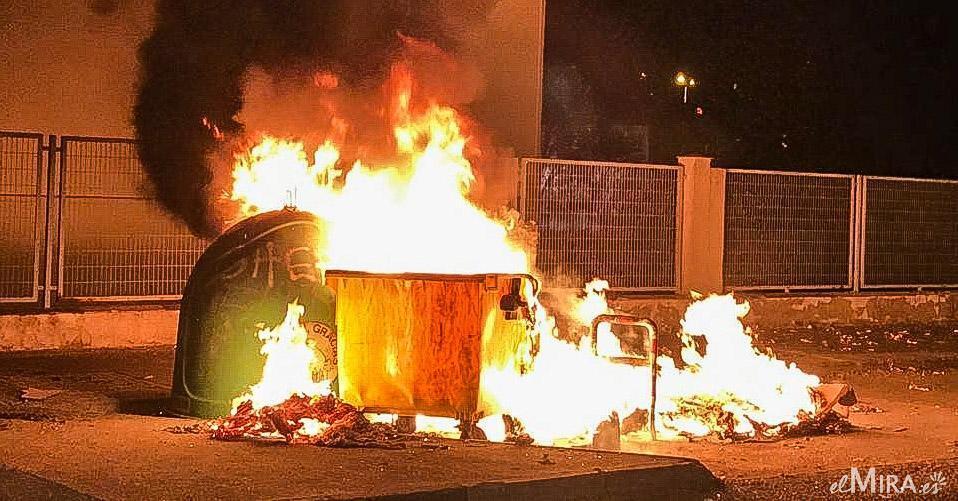 Cuatro contenedores, uno de ellos destinado al reciclaje de vidrio, han sido prendidos fuego por tres jóvenes, quienes según manifiestan testigos a elMIRA.es, habrían huido rápidamente del lugar en bicicleta.