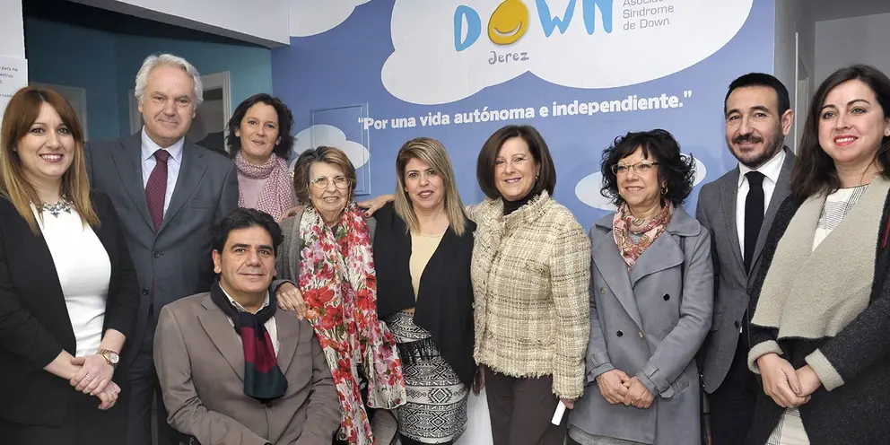 La alcaldesa, Mamen Sánchez, junto a la consejera de Igualdad y Políticas Sociales, María José Sánchez Rubio, ha asistido a la presentación del proyecto para la convivencia y la inclusión social de unidades familiares compuestas por personas con discapacidad intelectual y personas mayores, 'Patio XXI', ideado por la presidenta de la Asociación Down Jerez Aspanido, y elaborado por el equipo técnico de la Oficina Municipal de Atención a la Discapacidad del Ayuntamiento de Jerez, con la colaboración institucional de la Junta de Andalucía y la Universidad de Cádiz.