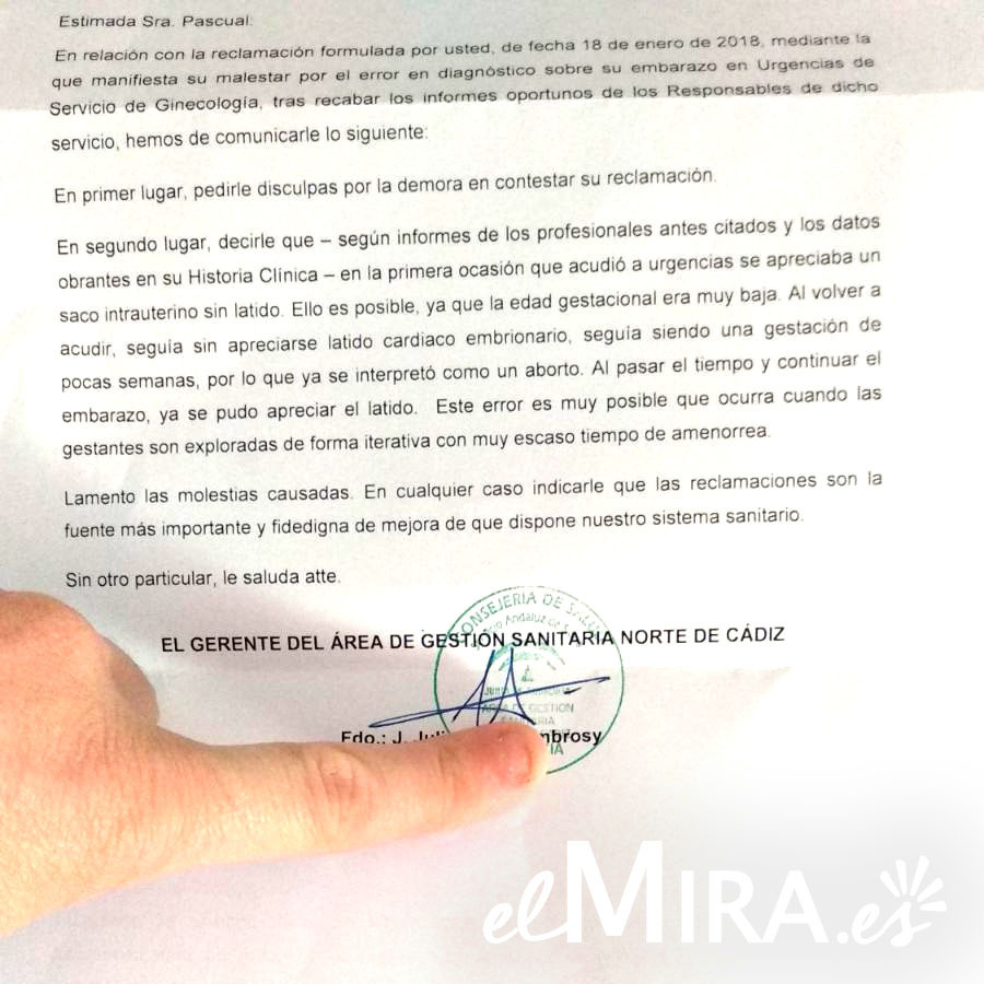 Tras más de cuatro meses de espera, Pedro y Rosa por fin han recibido una contestación por parte del Área de Gestión Sanitaria en relación a una reclamación que interpusieron los padres por la falta de respuesta ante una amenaza de aborto a los pocos días del embarazo y que ya fue denunciada por este medio.
