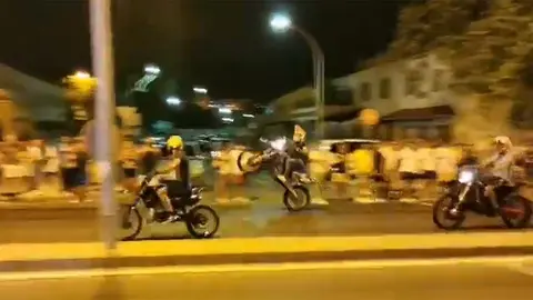 Por la noche, sobre las once horas, los moteros, que se habían dirigido a El Puerto de Santa María, volvieron a concentrarse en la avenida Blas Infante. Agentes de ambos cuerpos cortaron la avenida con el objetivo de poder dispersar las motos y el público asistente.