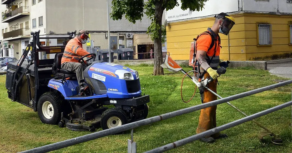 Una vez se han revisado los sistemas de riego de todas las zonas verdes coincidiendo con el estreno esta misma semana de un sistema telemático de activación y seguimiento, se está empleando maquinaria específica y una brigada específica de operarios para completar las labores de siega de césped, recorte de arbustos y poda de arbolado de manera unitaria.