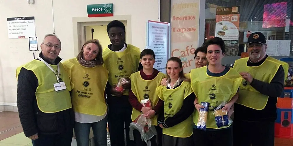 Rotary Club de Jerez, con la colaboración de Alcampo, el Altillo School, la Sociedad San Vicente de Paul y ADECOSUR han puesto en marcha durante este pasado viernes y sábado su anual campaña de recogida de alimentos en el centro comercial Alcampo, que se destinarán a familias jerezanas con dificultades económicas y sociales del Comedor Social de Cáritas San Rafael.