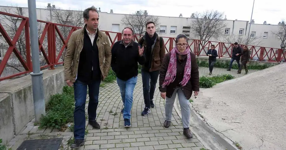 El portavoz y candidato del PP, Antonio Saldaña, ha comprobado la situación de abandono que sufre la barriada de El Agrimensor en una visita realizada junto a representantes vecinales.