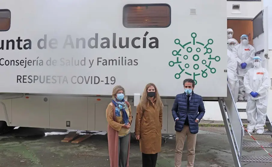 La delegada del Gobierno, Ana Mestre, visitó la unidad móvil junto a la delegada territorial de Salud y Familias, Isabel Paredes, y el gerente del Área de Gestión Sanitaria de Jerez, Costa Noroeste y Sierra, Miguel Ángel Ortiz, con parte de su equipo. Mestre agradeció especialmente la labor de los profesionales que se encargan de estas muestras poblacionales masivas.
