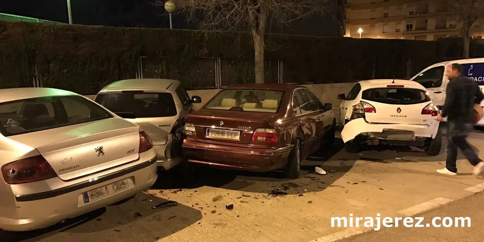 Varios testigos informan a MIRA Jerez que un BMW 320 de color blanco colisionó a gran velocidad con cuatro vehículos correctamente estacionados.