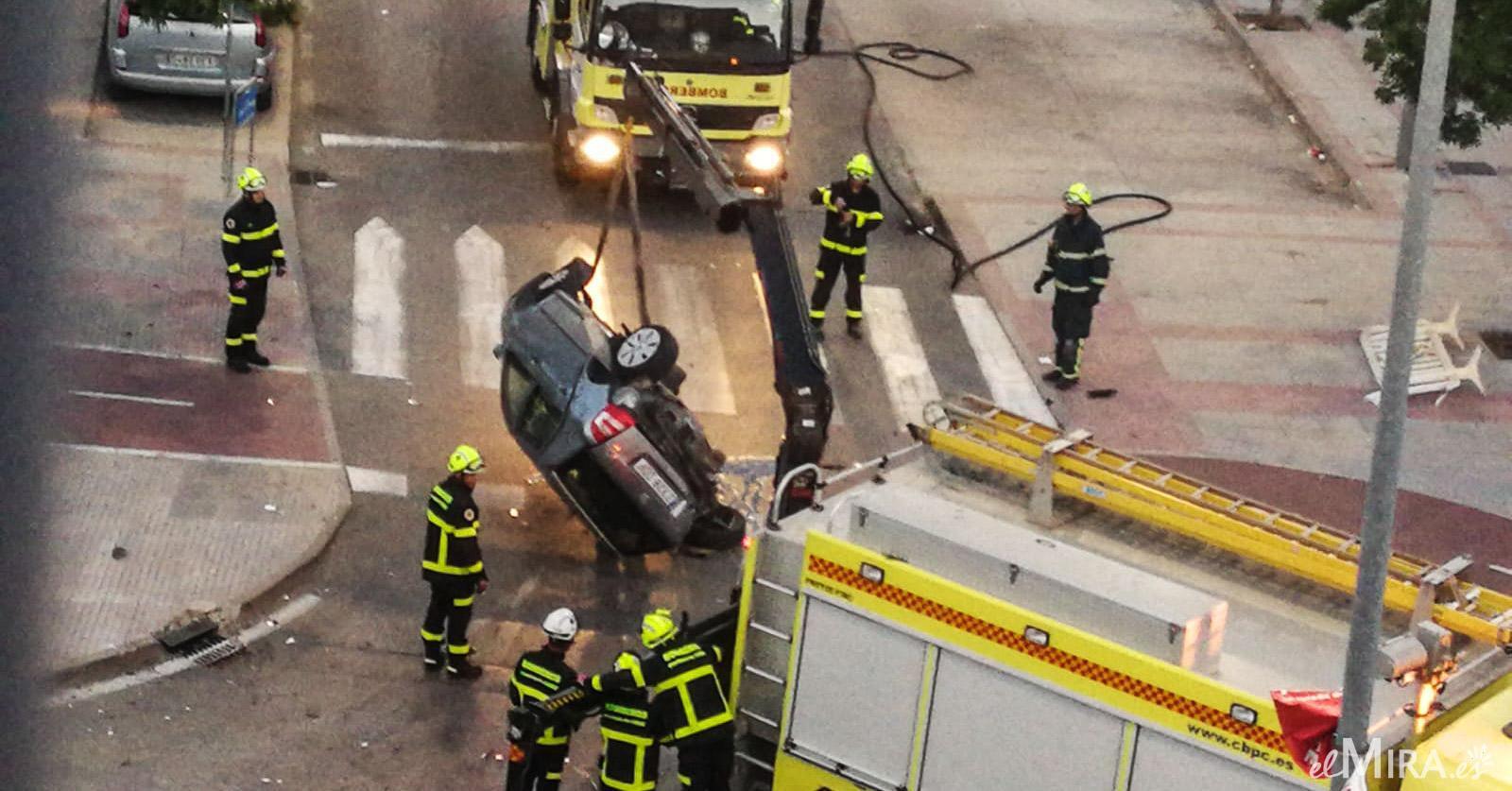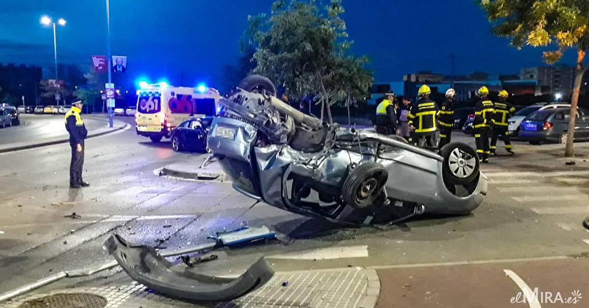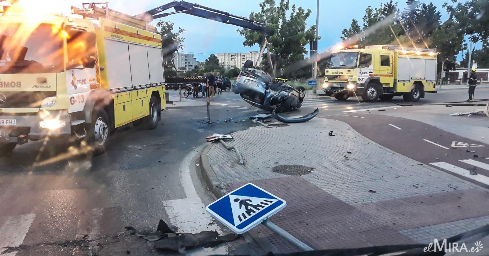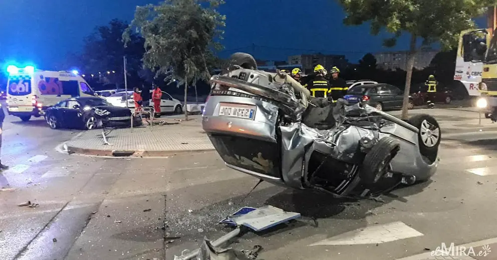 El fuerte impacto ha provocado que el segundo de los vehículos quedara completamente volcado y desplazado a más de diez metros de distancia, sufriendo ambos coches daños irreparables.