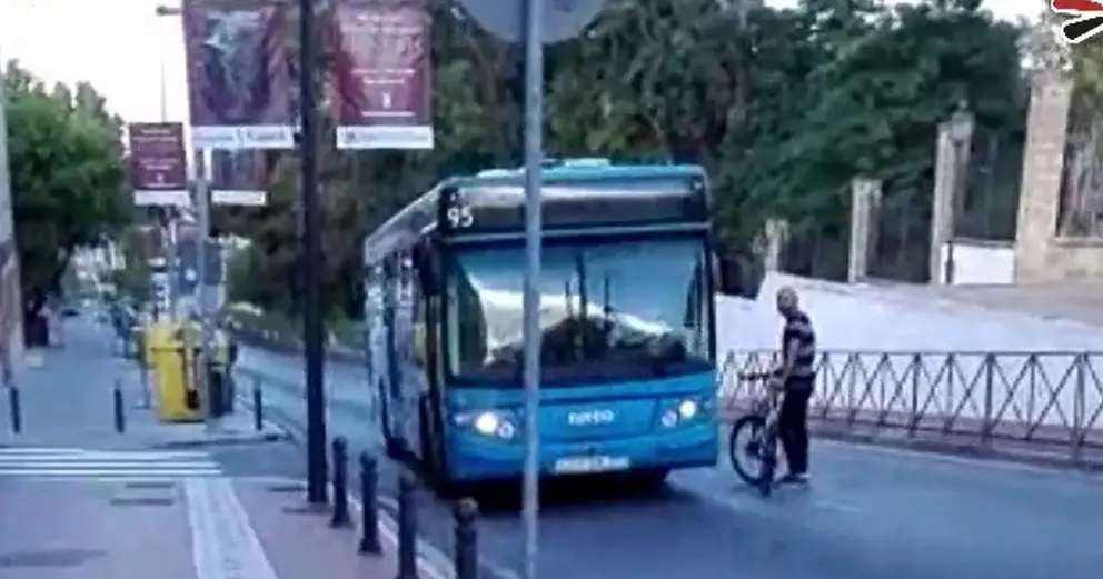 Un autobús urbano no podía proseguir su marcha, viéndose imposibilitado para subir el nivel de la cuesta de dicha calle que se dirige hacia el centro de la ciudad, la cual se encuentra junto a la Calle Cuesta del Palenque.